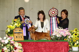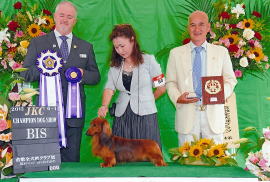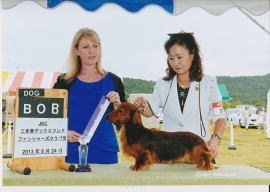 BIS / 東京東オールダックスフンドクラブCH展 (April 13, 2014) / Judge : 瓜生真砂巳 (Japan) BIS / ダックスフンド部会展 (March 20, 2013) / Judge : John C F Peddie (Canada) BIS / 群馬県クラブ連合会CH展 (March 16, 2013) / Judge : 岩崎隆廣 (Japan) BIS / 湘南ダックスフンドクラブCH展 (October 22, 2011) / Judge : 神里洋 (Japan) BIS / 倉敷全犬種クラブCH展 (June 1, 2012) / Judge : Guy Jeavons (Canada) BIS / ダックスフンド部会展 (June 3, 2012) / Judge : Tomas Alexander (Canada) BIS / 東京北クラブ連合会展 (October 28, 2012) / Judge : 施 三徳 (Taiwan) …And many many others. |